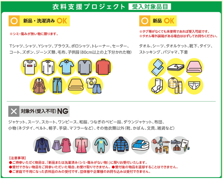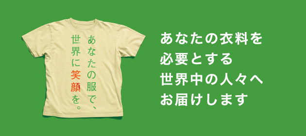 「&EARTH 衣料支援プロジェクト」は、ご家庭で不用になった衣料品を三井不動産グループの商業施設へお持ちいただき、NPO法人 日本救援衣料センターを通じて、南米、アジア諸国、アフリカなど、世界の人々のもとへ寄贈する活動です。